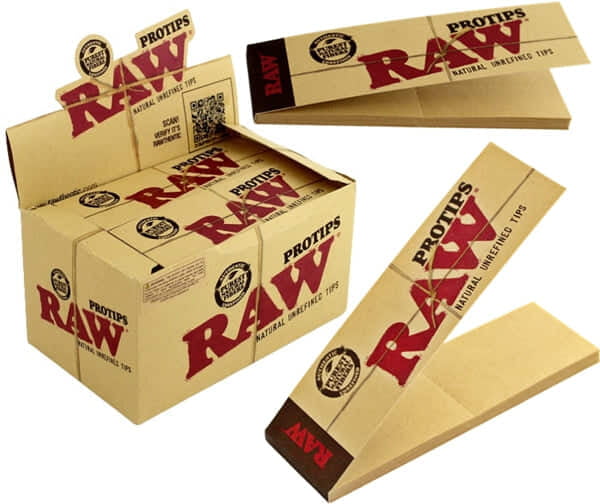 Raw Protips Natural Unrefined Tips. 24 Packs in a Box Display with 21 Tips Per Pack.